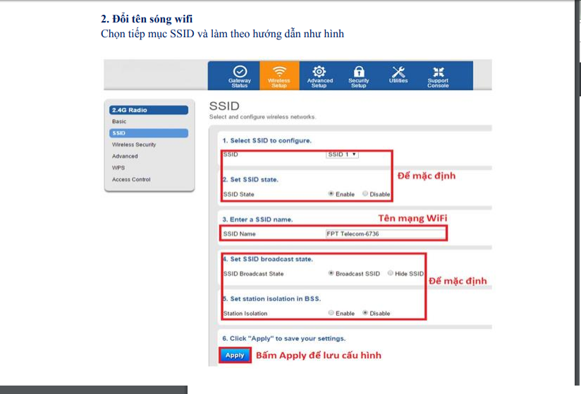 Hướng dẫn cấu hình đổi tên và pass wifi Modem Gpon-G97D2