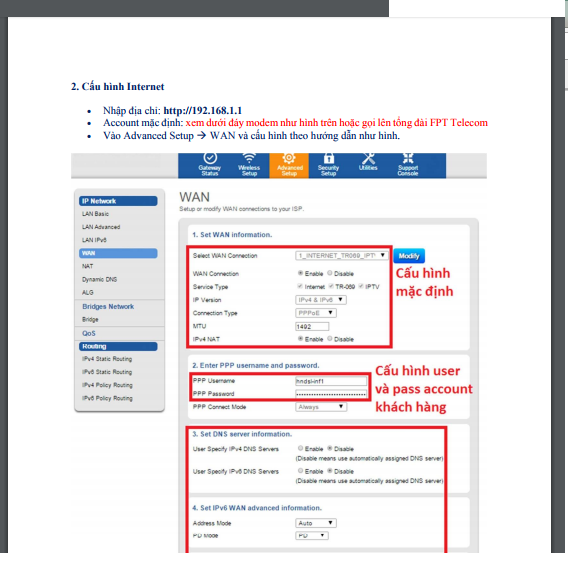 II. CẤU HÌNH MODEM FPT