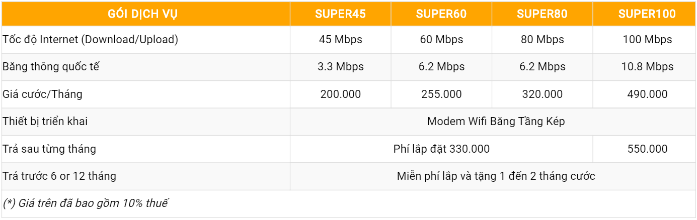 - KH Thuê nhà : CMND + Phí hòa Mạng + phí đặt cọc thế chân modem 660.000đ.